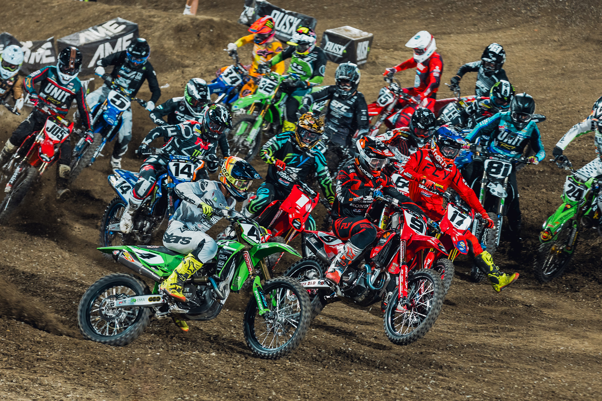 Supercross can be more technical and rhythm like for riders. Supercross is an one of the most exciting motorsports out there and can be watched close-up by 10s of thousands of spectators within an indoor arena (often at night) to maximise both the view and spectacle of noise and colour